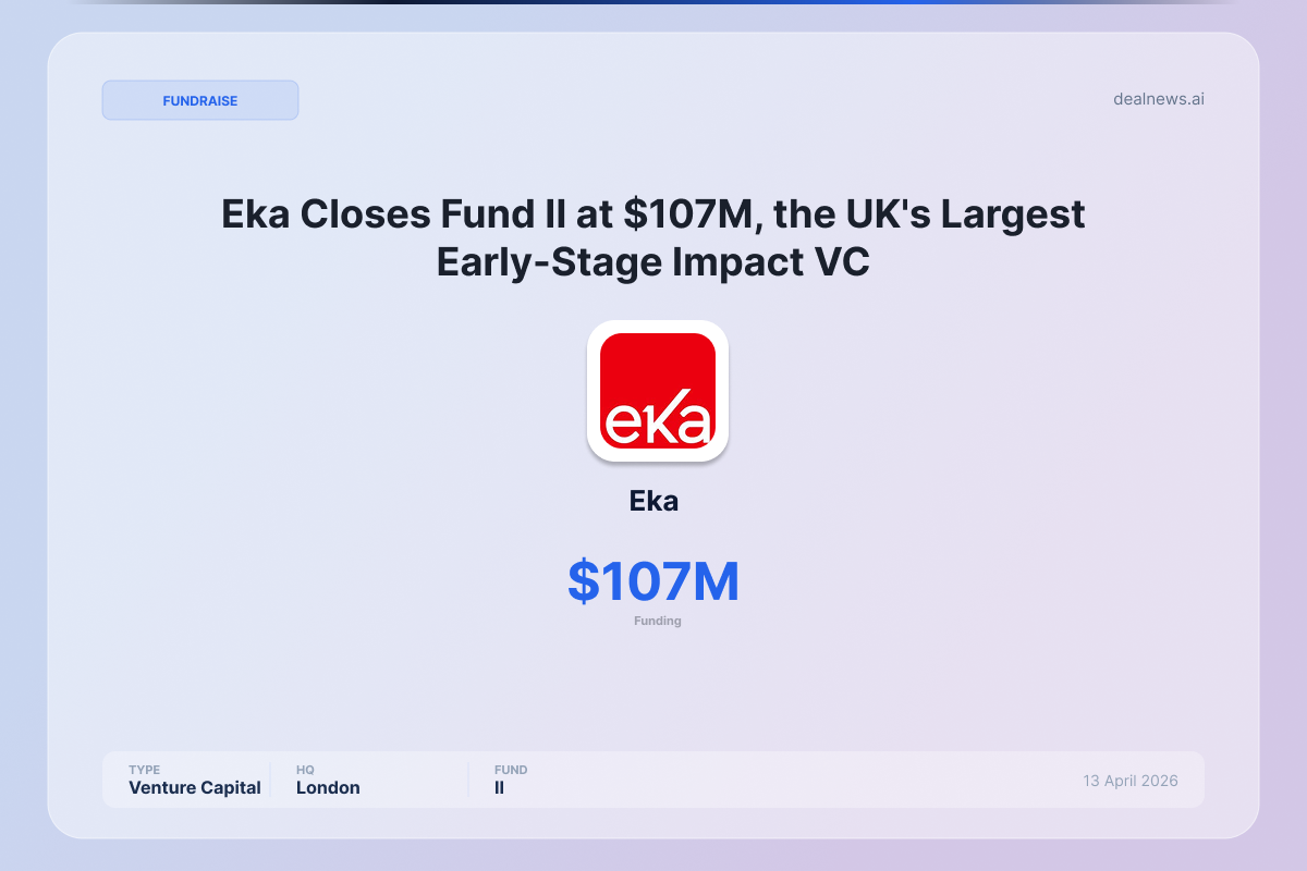 Eka, a UK-based impact venture capital firm, has announced the final close of its second fund at $107 million (£80 million) on April 13, 2026, making it the UK’s largest