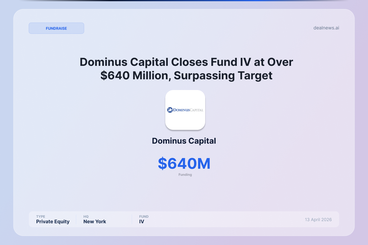 Dominus Capital, a New York-based operationally-focused private equity firm, has announced the successful close of its fourth and largest fund to date on April 13, 2026, Dominus Capital Partners IV,