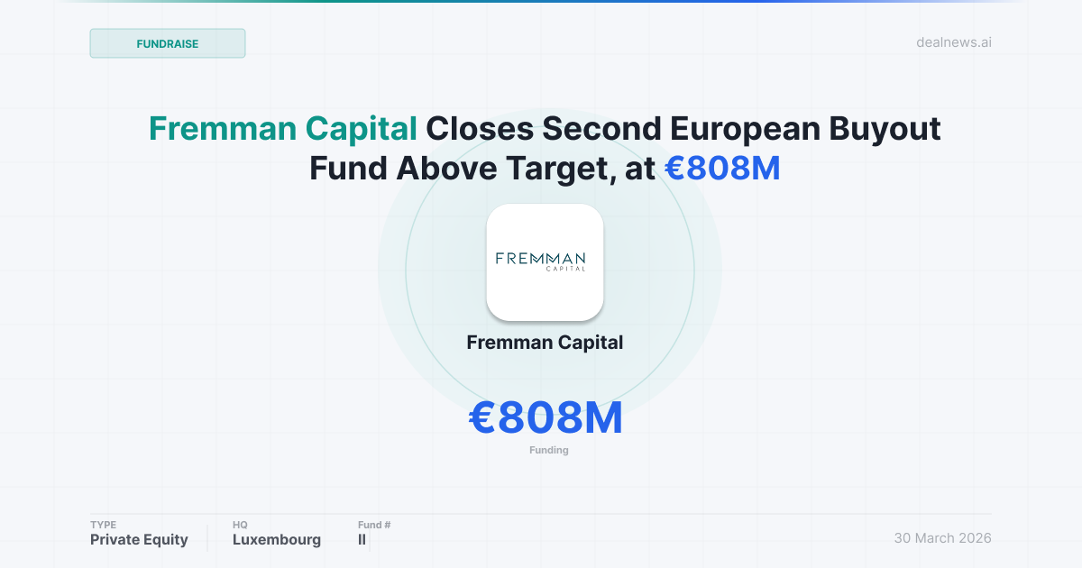 Fremman Capital has successfully closed its second mid-market buyout fund, Fremman II MM, raising €808 million alongside an additional €45 million in managed accounts, surpassing its €750 million target. The fund, announced on March 30, 2026, attracted commitments from a globally diverse group of institutional investors across Europe, the Americas, the Middle East, and Asia, with strong re-up participation from existing investors complemented by new capital from additional geographies.
