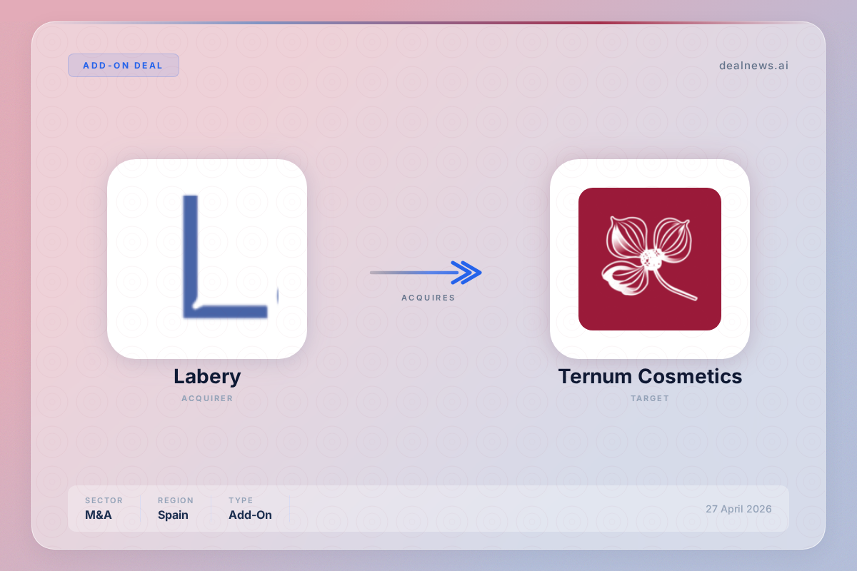 Mirai Investments has completed the acquisition of Ternum Cosmetics, a company based in Barberá del Vallés, Barcelona, with more than 30 years of experience in research, development, and innovation (R&D&i) for cosmetic and personal care products. This strategic move, announced on April 27, 2026, marks the launch of Mirai’s new cosmetics division, Labery, which will operate as a Contract Development and Manufacturing Organization (CDMO) offering end-to-end services from product ideation and formulation to manufacturing, packaging, and logistics.
