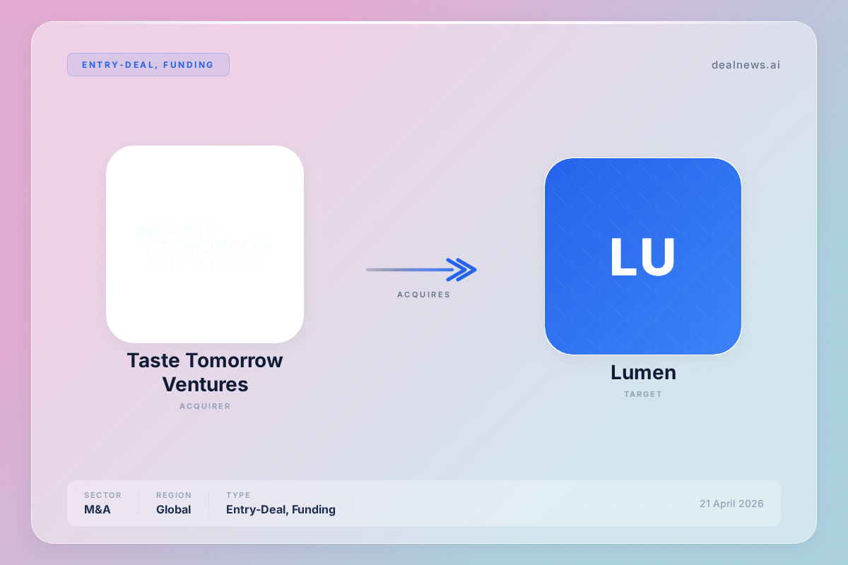 The financial terms of the investment have not been disclosed. The deal involves Taste Tomorrow Ventures acquiring a stake in Lumen through an upcoming funding round, positioning the investor to leverage Lumen’s unique product formulations and growing market presence in the health and wellness beverage segment.
