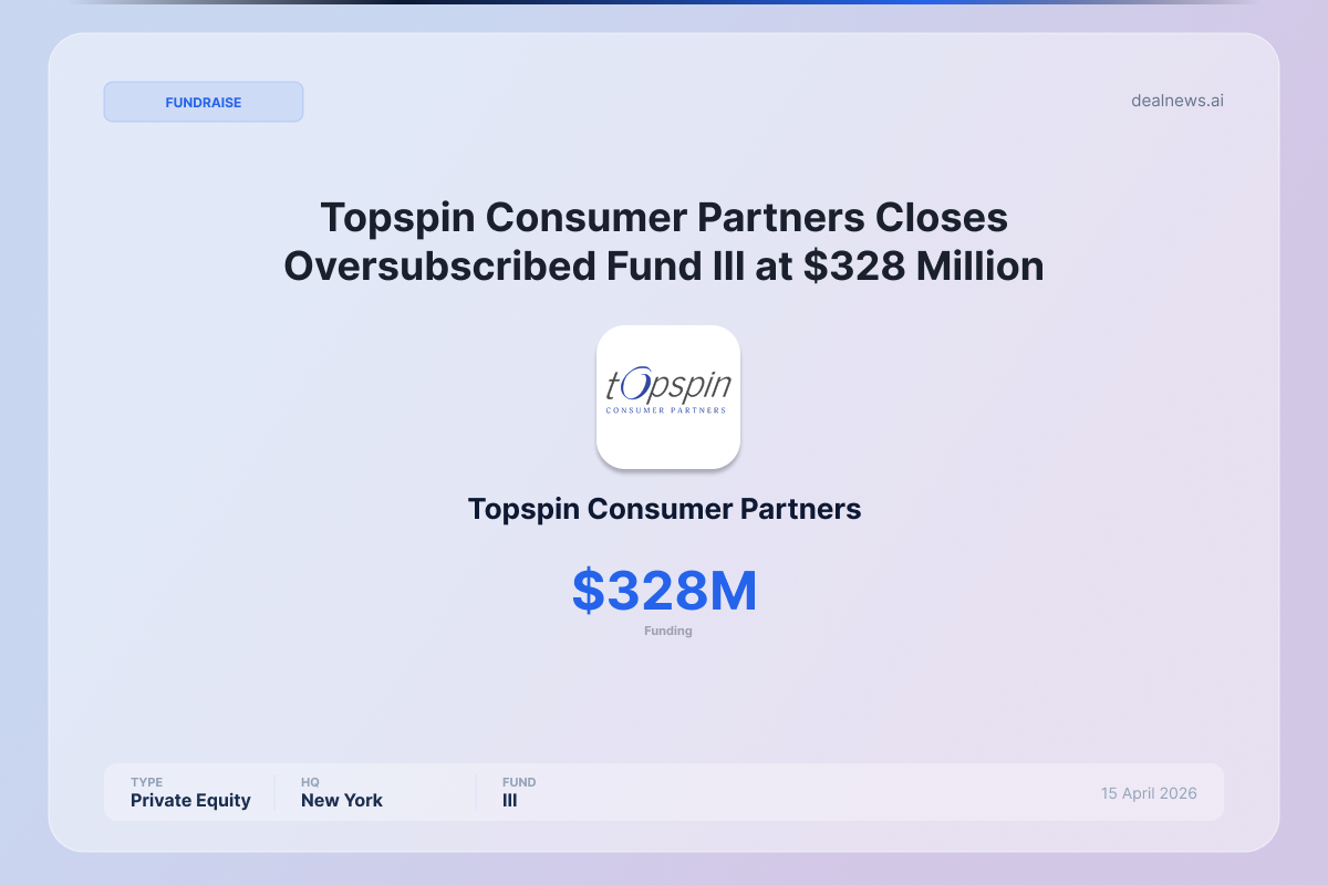 Topspin Consumer Partners, a Westchester, New York-based operationally-driven private equity firm focused on the consumer sector, has announced the final closing of Topspin Consumer Partners III on April 15, 2026. The fund closed oversubscribed at $328 million in capital commitments, exceeding its original hard cap and bringing the firm’s total assets under management to approximately $830 million.