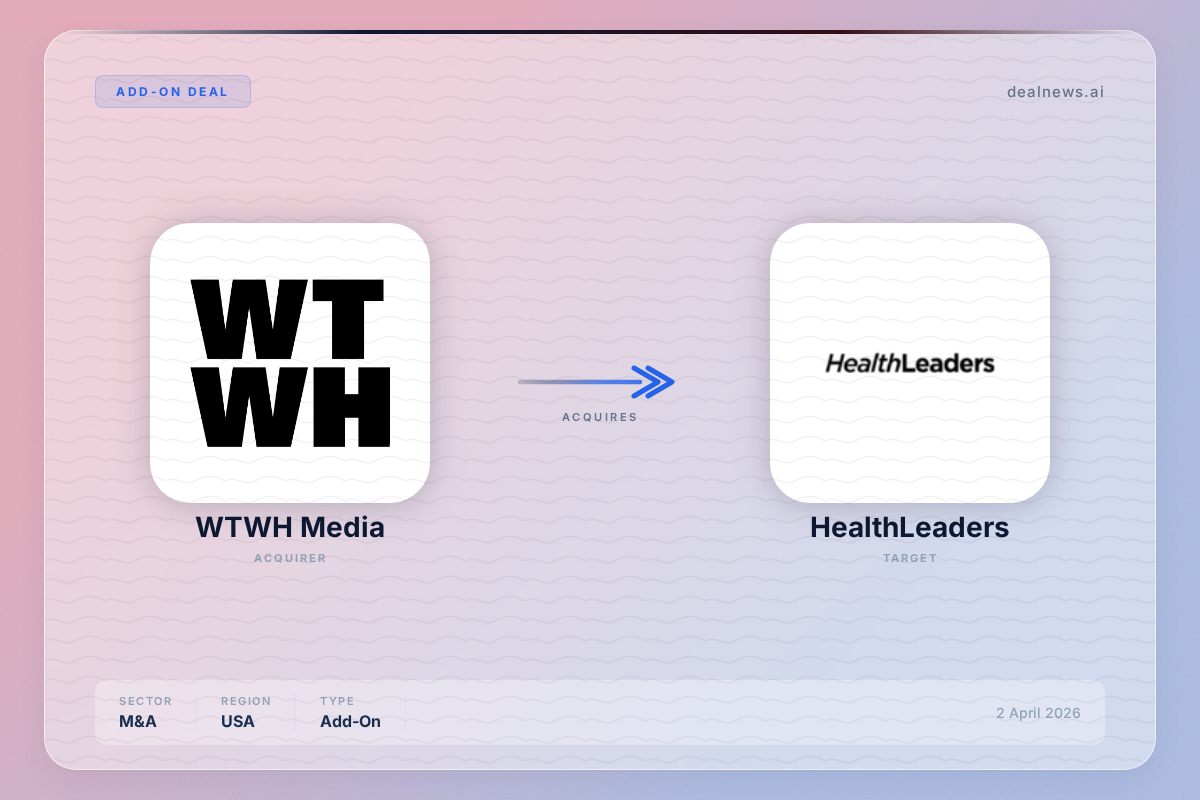 WTWH Media, backed by Mountaingate Capital, announces the acquisition of HealthLeaders, a prominent media and events platform serving hospital and health system executives. The deal, announced on April 2, 2026, strengthens WTWH’s position in the healthcare media market by combining its existing post-acute care focus with HealthLeaders’ established hospital leadership audience.